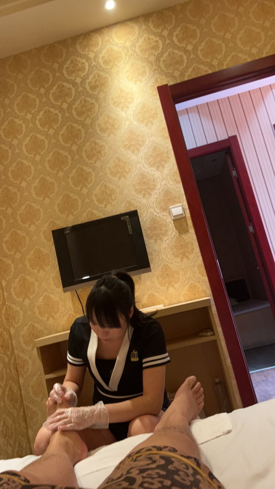 闲来无事洗个澡,洗完上个二楼做个按摩,按着按着这娘们就不正经了,用手蹭我jb,然后问我做ty吗,我想